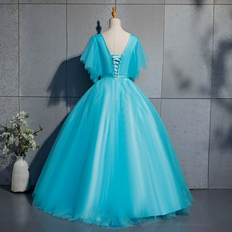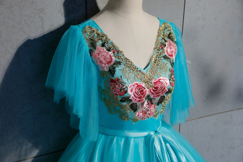 Review lake blue butterfly sleeve embroidery ball gown Medieval Renaissance Gown queen cos Victorian dress