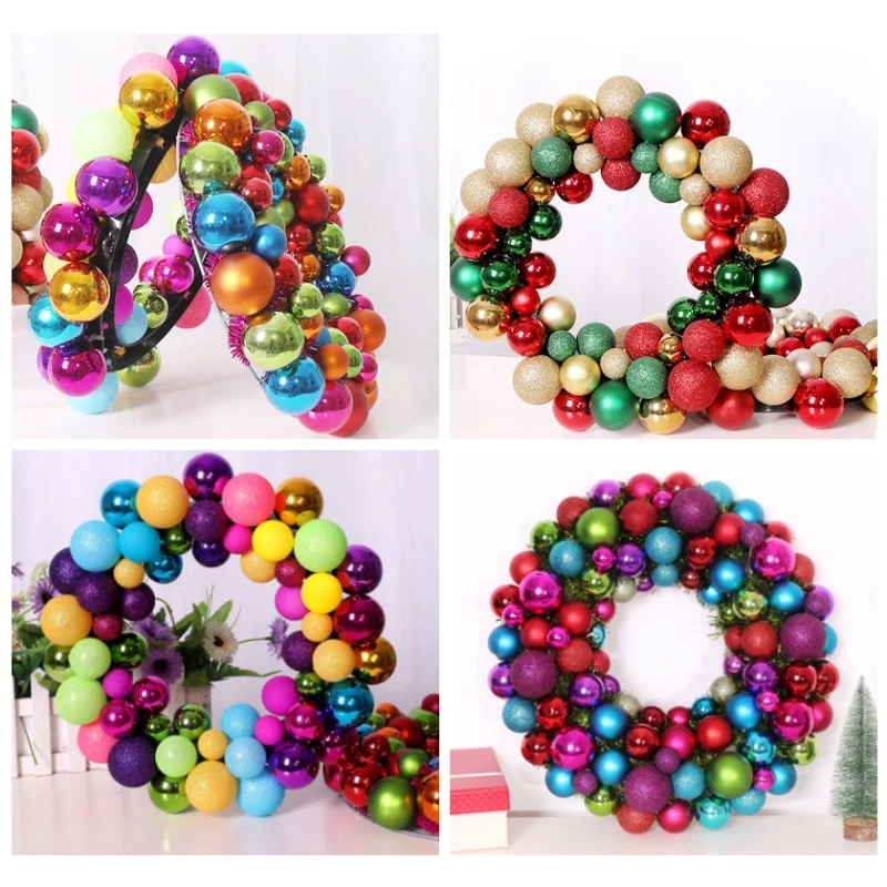 Hot Sale Sparkling Christmas Ball Wreath Front Door Hanging Garland Holiday Home Decoration Ornaments Random