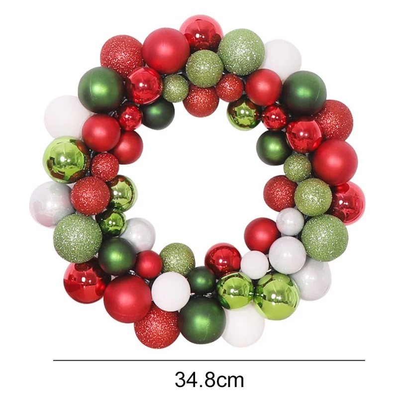 Sparkling Christmas Ball Wreath Front Door Hanging Garland Holiday Home Decoration Ornaments Random